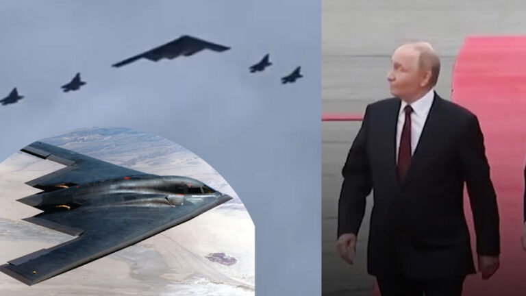 আলাস্কার একটি মার্কিন বিমান ঘাঁটিতে রাশিয়ার প্রেসিডেন্ট ভ্লাদিমির পুতিনকে স্বাগত জানানোর সময় সামরিক শক্তি প্রদর্শন করেছে যুক্তরাষ্ট্র। শুক্রবার (১৫ আগস্ট) প্রেসিডেন্ট ডোনাল্ড ট্রাম্প ও পুতিন যখন এলমেনডর্ফ-রিচার্ডসন জয়েন্ট বেসে লাল গালিচার ওপর দিয়ে হেঁটে যাচ্ছিলেন, তখন আকাশে বি-২ বোমারু বিমান ও অন্যান্য যুদ্ধবিমান ফ্লাইওভার পরিচালনা করে। দুই নেতার উপস্থিতিতে আকাশে চারটি এফ-৩৫ ও একটি বি-২ স্পিরিট বোমারু বিমান উড়ে যায়। এই বি-২ বোমারু বিমানের দু’পাশে ছিল এফ-২২ যুদ্ধবিমান। এই ফ্লাইওভারটি পুতিনের সঙ্গে আলোচনার আগে ট্রাম্পের ব্যক্তিগত নির্দেশে হয়েছে কিনা, তা তাৎক্ষণিকভাবে নিশ্চিত হওয়া যায়নি। তবে, রাশিয়াও একটি পারমাণবিক শক্তিধর দেশ হওয়ায় এই মহড়াটি যথেষ্ট তাৎপর্যপূর্ণ বলে মনে করা হচ্ছে।