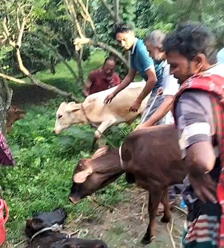 দুর্ঘটনায় ট্রাকে থাকা ৪২টি গরুর মধ্যে কয়েকটি ঘটনাস্থলেই মারা যায়, বাকিগুলো গুরুতর আহত হয়। আহত গরু ব্যবসায়ীদের চিৎকারে স্থানীয় বাসিন্দা ও পথচারীরা ছুটে আসেন এবং দ্রুত উদ্ধার কার্যক্রমে অংশ নেন।