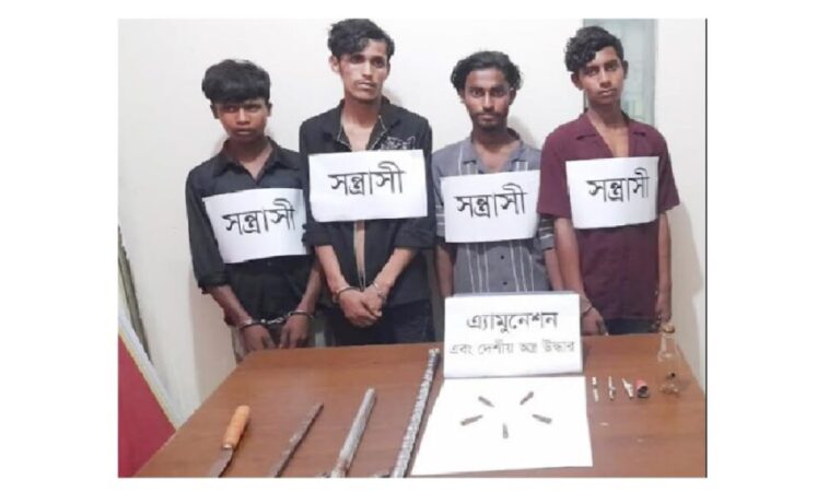 চাঁদপুরে যৌথ বাহিনীর অভিযানে দেশীয় অস্ত্রসহ ৪জন সন্ত্রাসী গ্রেপ্তার