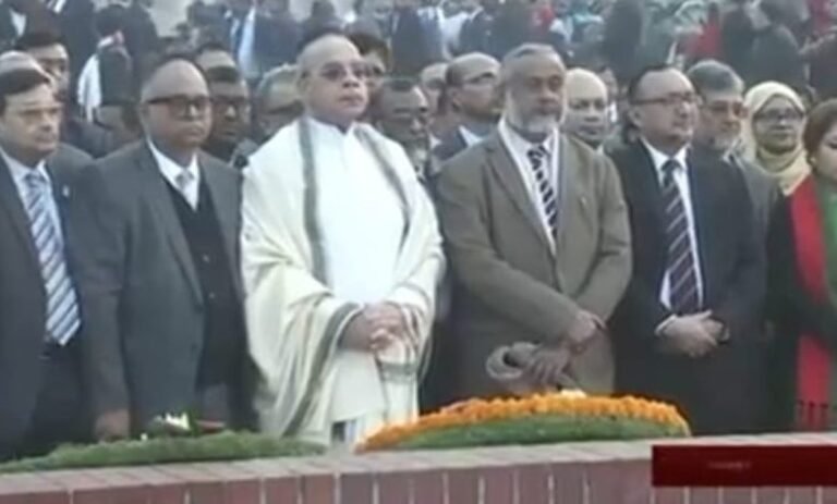 বাংলাদেশ সুপ্রিম কোর্টের জনসংযোগ বিভাগ জানায়, রাষ্ট্রপতি ও অন্তর্বর্তী সরকারের প্রধান উপদেষ্টার শ্রদ্ধা নিবেদনের পরপরই প্রধান বিচারপতি এবং সুপ্রিম কোর্টের উভয় বিভাগের বিচারপতিরা সম্মিলিতভাবে পুষ্পার্ঘ্য অর্পণ করেন।