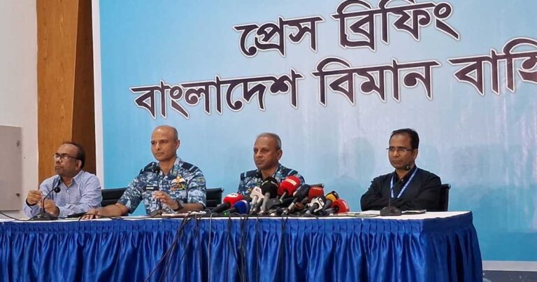 সংবাদ সম্মেলনে বিমানবাহিনীর জরুরি সমন্বয়ক কেন্দ্রের এয়ার কমান্ডার মো. মিজানুর রহমান লিখিত বক্তব্যে বলেন, দুর্ঘটনায় নিহত ও আহতদের পরিবারের পাশে বিমানবাহিনী থাকবে এবং প্রয়োজন অনুযায়ী সর্বোচ্চ সহায়তা প্রদান করবে। তিনি বলেন, “এই মর্মান্তিক ঘটনায় আমরা গভীরভাবে শোকাহত এবং উদ্ধার অভিযানে অংশ নেওয়া আইনশৃঙ্খলা বাহিনীকে আন্তরিক ধন্যবাদ জানাই।”