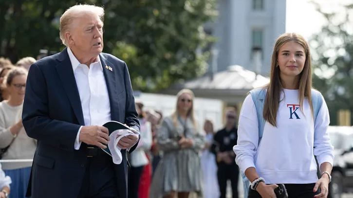 গতকাল শুক্রবার হোয়াইট হাউসের বাইরে সাংবাদিকদের সঙ্গে আলাপ করছিলেন ডোনাল্ড ট্রাম্প। এসময় ডোনাল্ড ট্রাম্প জুনিয়রের মেয়ে কাই নিজের ব্র্যান্ডের পোশাক পরে দাদার পাশে দাঁড়িয়েছিলেন। ওয়াশিংটনে প্রেস কনফারেন্সে নিজের ১৮ বছর বয়সী নাতনিকে দেখিয়ে ট্রাম্প সাংবাদিকদের বলেন, “যাই হোক, এ হলো কাই।”