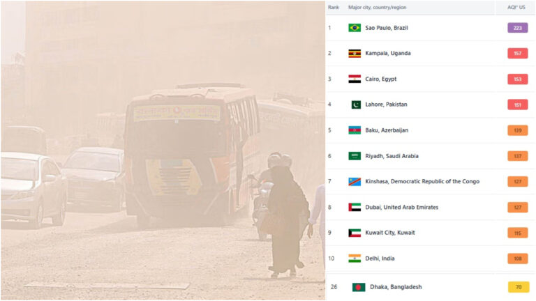 বায়ুদূষণে শীর্ষে সাও পাওলো, ঢাকার অবস্থান ২৬