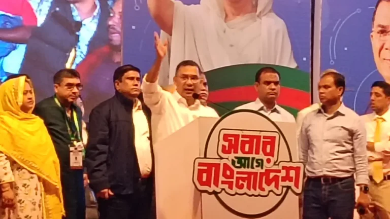 বৃহস্পতিবার (২২ জানুয়ারি) সন্ধ্যা সাড়ে ৬টায় হবিগঞ্জের শায়েস্তাগঞ্জে বিএনপির নির্বাচনী জনসভায় প্রধান অতিথির বক্তব্যে এসব কথা বলেন তারেক রহমান। তিনি বলেন, বিএনপি ক্ষমতায় গেলে দেশে কর্মসংস্থান সৃষ্টি হবে, অর্থনীতি ঘুরে দাঁড়াবে এবং সাধারণ মানুষের অধিকার নিশ্চিত করা হবে।