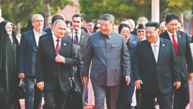 একই দিনে শি সামরিক শক্তি প্রদর্শনের মাধ্যমে বিশ্বশক্তির বিকল্প চিত্র উপস্থাপন করেন। এ কুচকাওয়াজে চীন, রাশিয়া ও উত্তর কোরিয়ার নেতাদের একসঙ্গে উপস্থিতি পশ্চিমা বিশ্বকে বার্তা দিয়েছে বলে বিশ্লেষকরা মনে করছেন। এদিকে যুক্তরাষ্ট্রের প্রেসিডেন্ট ডোনাল্ড ট্রাম্প অভিযোগ করেছেন, শি যুক্তরাষ্ট্রের বিরুদ্ধে পুতিন ও কিমের সঙ্গে ষড়যন্ত্র করছেন।