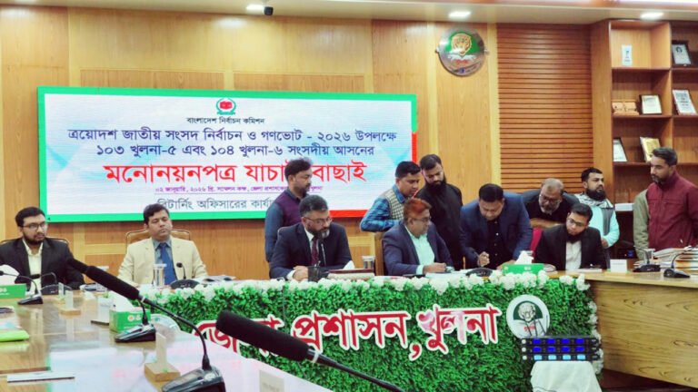 আজ শুক্রবার (২ জানুয়ারি) খুলনা-৫ (ডুমুরিয়া-ফুলতলা) এবং খুলনা-৬ (কয়রা-পাইকগাছা) আসনের জমা দেওয়া মনোনয়নপত্র যাচাই করেন সংশ্লিষ্ট রিটার্নিং কর্মকর্তা। নির্বাচন কমিশনের নির্ধারিত সময়সূচি অনুযায়ী এ যাচাই-বাছাই অনুষ্ঠিত হয়।