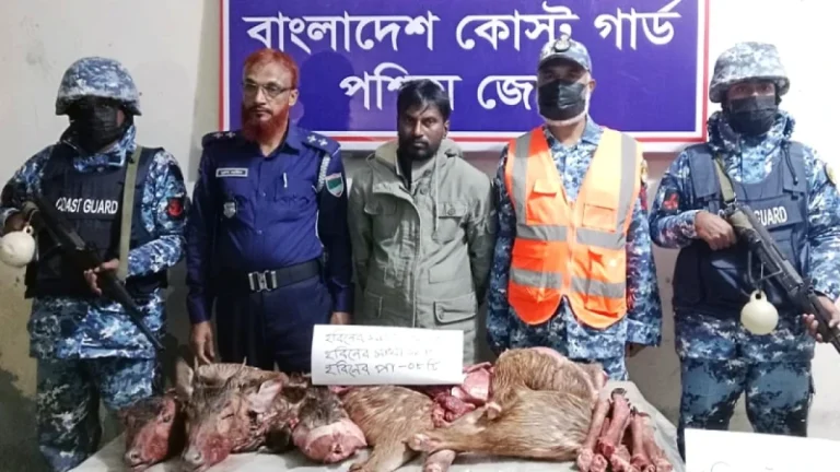 হরিণ শিকারের বিরুদ্ধে সুন্দরবনের মোংলা অংশের কানাইনগর এলাকায় কোস্ট গার্ড ও পুলিশের নেতৃত্বে যৌথ অভিযান পরিচালনা করা হয়েছে। গতকাল বুধবার গভীর রাতে পরিচালিত এই অভিযানে একটি ঝুপড়ি থেকে ৩২ কেজি হরিণের মাংস, দুটি মাথা, আটটি পা এবং আড়াই হাজার মিটার ফাঁদ উদ্ধার করা হয়। ঘটনাস্থল থেকে এক শিকারিকেও গ্রেপ্তার করা হয়েছে।