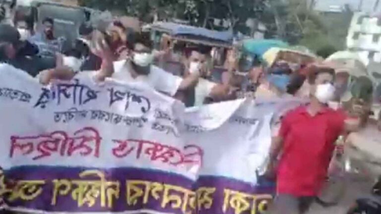আজ বৃহস্পতিবার (১৮ সেপ্টেম্বর) সকালে ব্যানার হাতে ১৫-২০ জন যুবক প্রায় পাঁচ মিনিট সড়কে অবস্থান করেন। পরে দ্রুত এলাকা থেকে প্রস্থান করেন তারা।