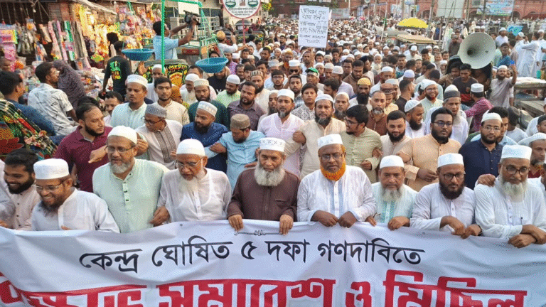 এর আগে নগরীর বিভিন্ন ওয়ার্ড থেকে নেতাকর্মীরা দলে দলে মিছিলে যোগ দেন। সমাবেশে নেতারা ৫ দফা দাবি পেশ করেন। দাবিগুলো হলো—জুলাই জাতীয় সনদের ভিত্তিতে আগামী ফেব্রুয়ারিতে নির্বাচন আয়োজন, সংসদের উভয় কক্ষে পিআর পদ্ধতি চালু, অবাধ ও সুষ্ঠু নির্বাচনে সবার জন্য সমান সুযোগ নিশ্চিতকরণ, ফ্যাসিস্ট সরকারের জুলুম-দুর্নীতি ও গণহত্যার বিচার এবং জাতীয় পার্টি ও ১৪ দলের কার্যক্রম নিষিদ্ধ ঘোষণা।