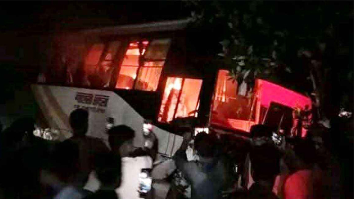 ময়মনসিংহে বাস-মাহেন্দ্র সংঘর্ষে নিহত ৫, বাসে আগুন