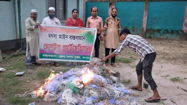 রংপুরে ২৫ হাজার মিটার কারেন্ট জাল জব্দ, পুড়িয়ে ধ্বংস
