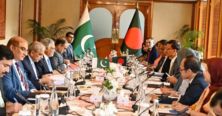 বাংলাদেশ ও পাকিস্তানের মধ্যে দ্বিপাক্ষিক সম্পর্ক জোরদারে অন্তর্বর্তী সরকারের পররাষ্ট্র উপদেষ্টা মো. তৌহিদ হোসেন এবং ঢাকায় সফররত পাকিস্তানের উপপ্রধানমন্ত্রী ও পররাষ্ট্রমন্ত্রী ইসহাক দারের মধ্যে দ্বিপক্ষীয় বৈঠক শুরু হয়েছে। রোববার (২৪ আগস্ট) সকাল পৌনে ১১টার দিকে রাজধানীর হোটেল সোনারগাঁওয়ে আনুষ্ঠানিকভাবে এই বৈঠকটি শুরু হয়। পররাষ্ট্র মন্ত্রণালয়ের তথ্য অনুযায়ী, বাংলাদেশের প্রতিনিধি দলে উপস্থিত আছেন পররাষ্ট্র উপদেষ্টা, নিরাপত্তা […]