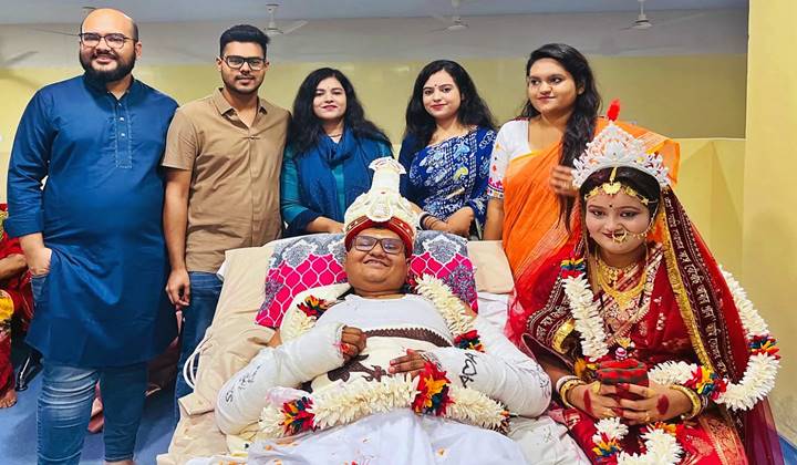 হাতে পায়ে ব্যান্ডেজ নিয়ে হাসপাতালের শয্যায় শুয়েই বিয়ে!