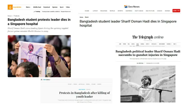 ওসমান হাদির মৃত্যু: আন্তর্জাতিক গণমাধ্যমে বাংলাদেশের রাজনৈতিক উত্তাপ