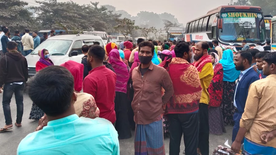 ঢাকা-ময়মনসিংহ মহাসড়ক অবরোধ, শ্রমিকদের বিক্ষোভ