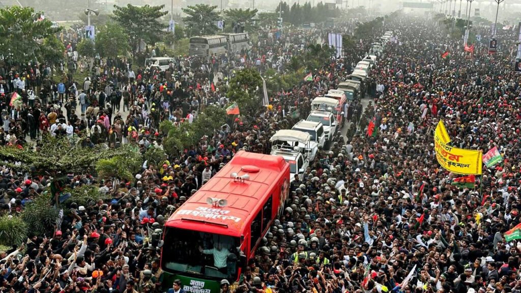 বাংলাদেশ জাতীয়তাবাদী দল (বিএনপি) ঢাকায় বিপুল সংখ্যক মানুষের সমাগমের কারণে সৃষ্ট অসুবিধার জন্য দুঃখ প্রকাশ করেছে। শুক্রবার (২৬ ডিসেম্বর) দলটির সিনিয়র যুগ্ম মহাসচিব রুহুল কবির রিজভী স্বাক্ষরিত এক বিজ্ঞপ্তিতে এ দুঃখপ্রকাশ করা হয়। বিজ্ঞপ্তিতে উল্লেখ করা হয়, বৃহস্পতিবার (২৫ ডিসেম্বর) দীর্ঘ ১৭ বছর পর বিএনপির ভারপ্রাপ্ত চেয়ারম্যান তারেক রহমান পরিবারসহ দেশে ফিরেছেন। তাঁকে অভ্যর্থনা জানাতে […]