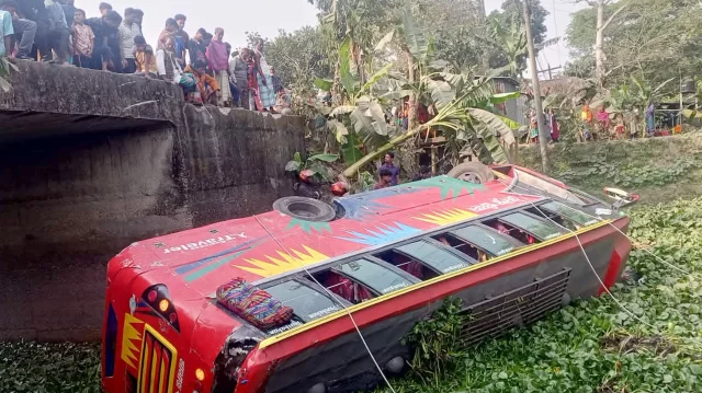 চাঁদপুরে যাত্রীবাহী বাস নিয়ন্ত্রণ হারিয়ে উল্টে খালে, ২৫ জন যাত্রী আহত