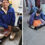 মাঙ্গিলাল একটি বিশেষভাবে তৈরি বল-বিয়ারিং লাগানো ঠেলাগাড়িতে বসে ইন্দোরের ব্যস্ত সারাফা বাজারে ঘুরে বেড়ান। কাঁধে