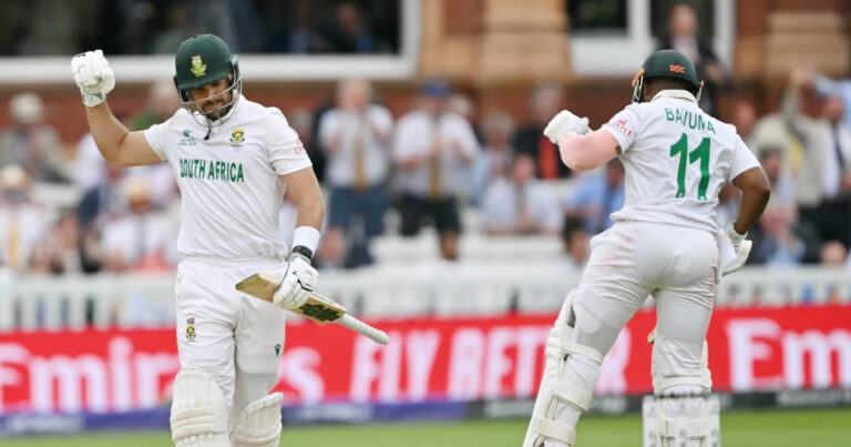 দ্বিতীয় ইনিংসে দক্ষিণ আফ্রিকার ব্যাটিং নায়ক এইডেন মার্করাম ও টেম্বা বাভুমা। দুজনের তৃতীয় উইকেট জুটিতে এসেছে অবিচ্ছিন্ন ১৪৩ রান, যা দলের আত্মবিশ্বাসকে চূড়ায় পৌঁছে দিয়েছে। মার্করাম অপরাজিত রয়েছেন ১০২ রানে, ইতোমধ্যেই তুলে নিয়েছেন তার দুর্দান্ত সেঞ্চুরি। অন্যদিকে অধিনায়ক বাভুমা রয়েছেন ৬৫ রানে অপরাজিত। চতুর্থ দিনে নিজের সেঞ্চুরি অর্জনের চেয়ে বেশি তার লক্ষ্য দলের জয় নিশ্চিত করা।